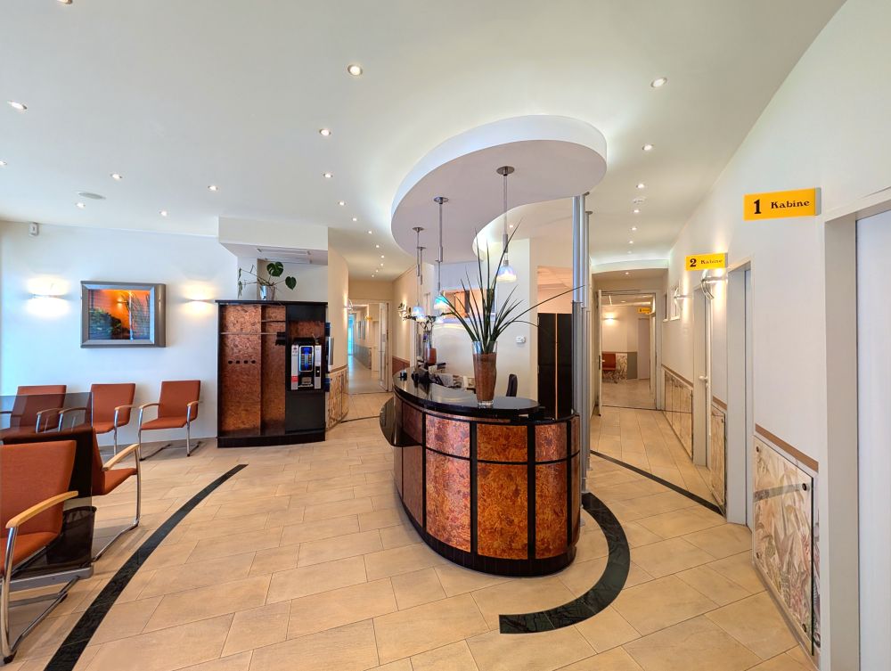 Die Innenraumarchitektur wie Objektausstattung, Möblierung, Farb-, Material - und Lichtkonzept wurden auf jeden Raum individuell zugeschnitten und jeweils in Einzelanfertigungen eingebaut. Eine Besonderheit im Raumprogramm war es, das anspruchsvolle und medizinisch breite Spektrum sinnvoll auf engstem Raum zu integrieren.