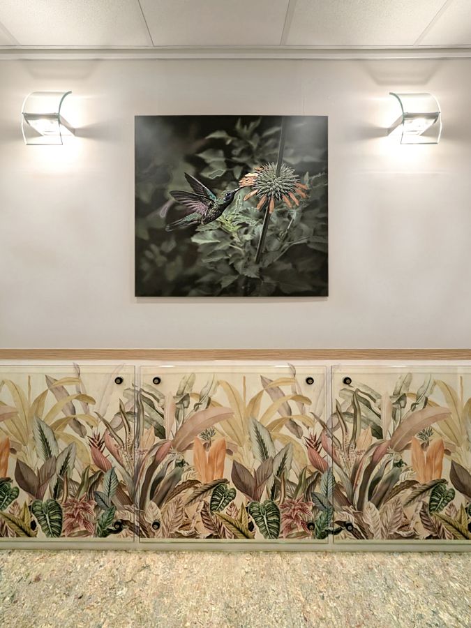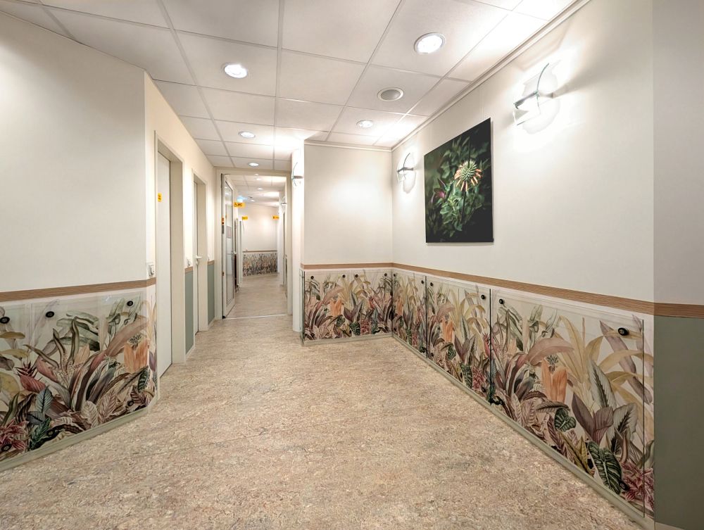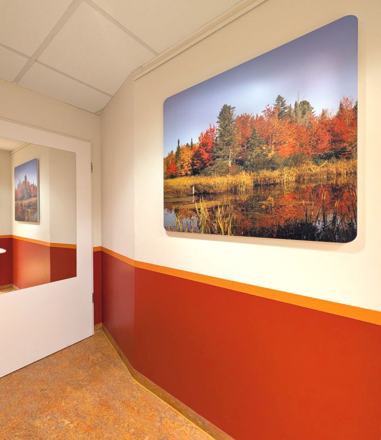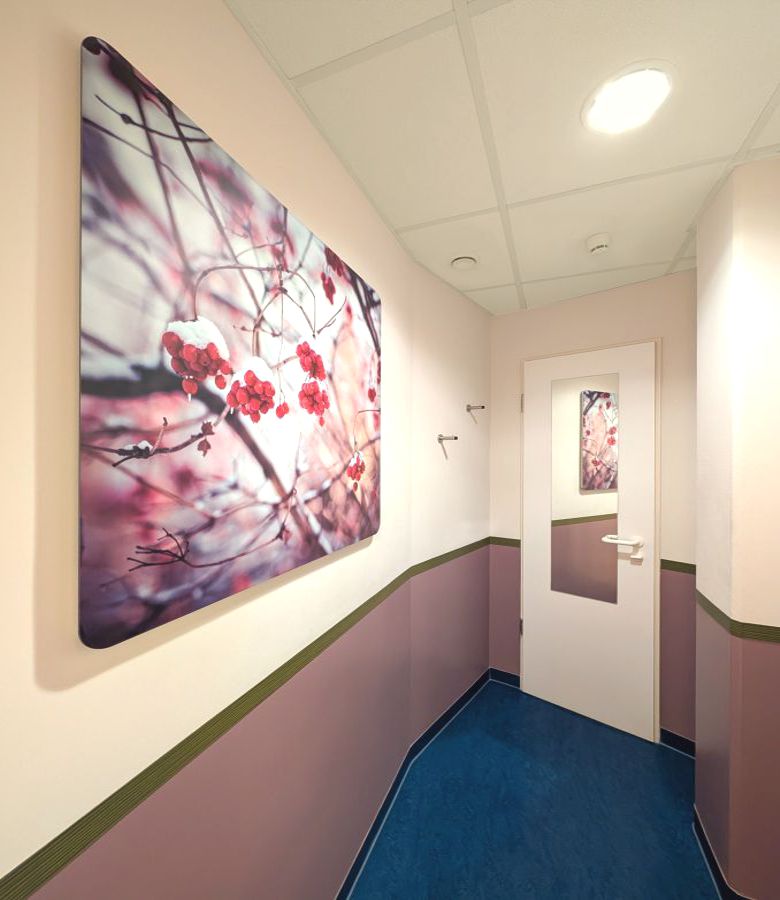 Einschließlich weiterem Austausch der beiden Linearbeschleuniger (nach Ablauf der Legacy-Software) gegen die neueste Medizintechnik. Damit einhergehend erfolgte eine umfassende Modernisierung und Aufwertung der Praxisflächen, auch die Kabinen wurden einem Upgrade unterzogen, hier unter dem Motto: „4 Jahreszeiten“.