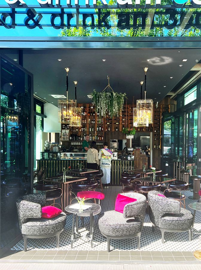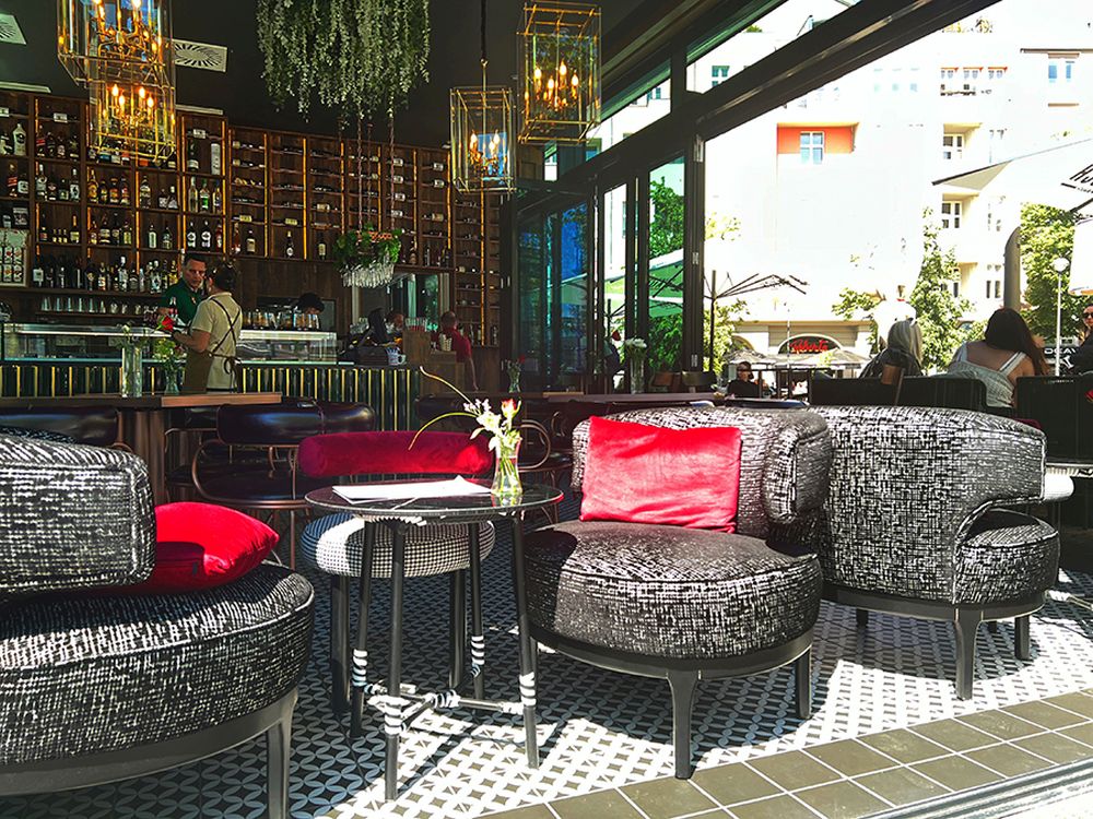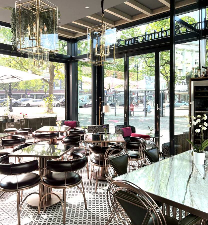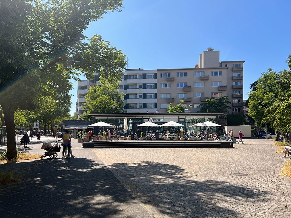 Der Pavillon bildet den Abschluss der langjährig geplanten Quartiersgestaltung mit Platzanlage, Wasserspiel und der Boulebahn. Durch die Ausrichtung und Bauweise des Pavillons wird dieser vollständig in die Platzanlage und das Stadtbild integriert. Der Gastraum ist zum Lehniner Platz vollständig öffenbar, damit wurden fließende Übergänge zwischen Brunnen, Platzanlage und Gastraum geschaffen.