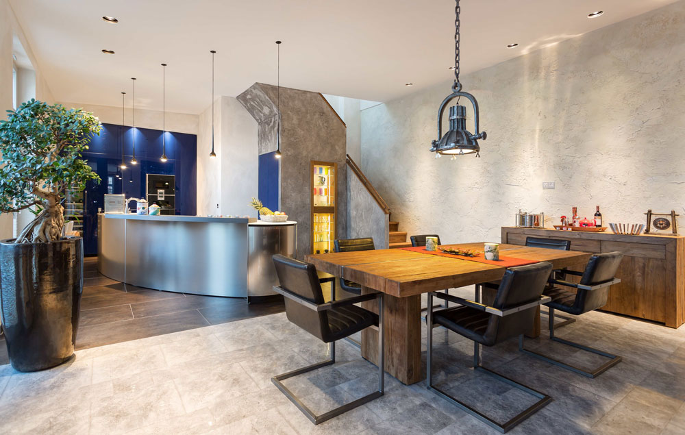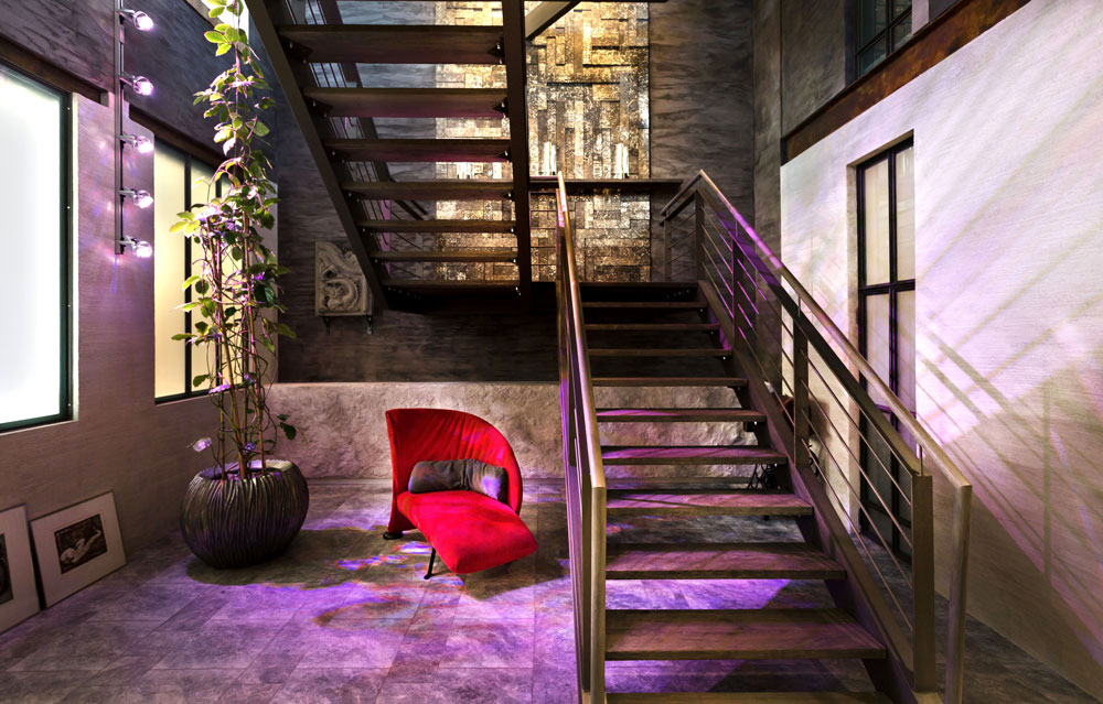 Innenraumarchitektur: Zur Unterstützung des Loft - Charakters galt es die Möblierung, die Wand- und Farbstrukturen sowie das Lichtkonzept aufeinander abzustimmen und in das Umfeld zu integrieren. Dazu wurde u.a. der größte Teil der Möblierung gesondert geplant und hergestellt.