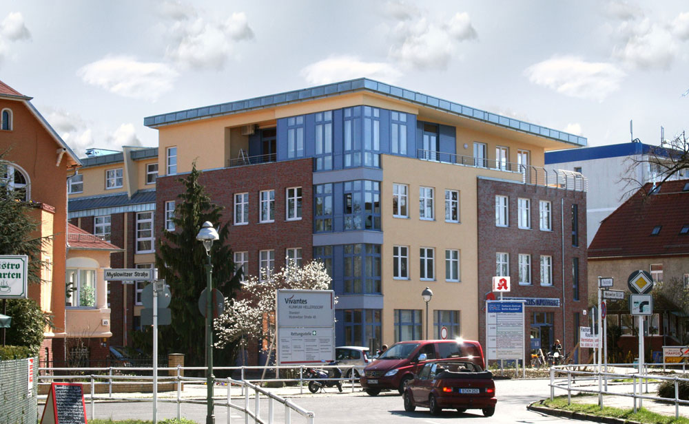 Umsetzung: Koordination mit Nachbargrundstücken (Veränderung der Flurstücke), mit dem Klinikum sowie mit den einzelnen Betreibern (Ärzte und Gewerbe). Ausführung der Projektsteuerung, der Objektplanung, des fachtechnischen Projektes, der Außenanlagenplanung sowie Innenraumplanung mit Objektausstattung.