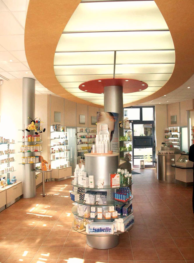 Medizinnahe Gewerbeeinheiten: Im Erdgeschoss befinden sich eine Apotheke mit Offizin, ein Sanitätshaus ein Café / Bistro für die wartenden Patienten und Besucher.