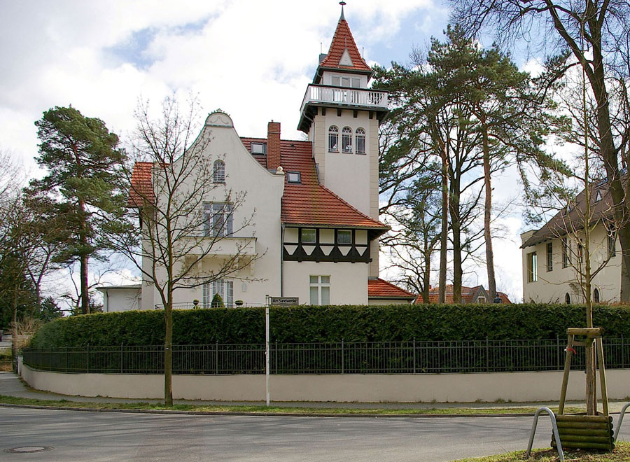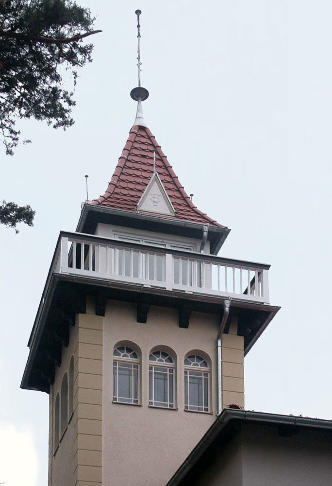 Der heute komplett befensterte Turm (jetzt mit Blick zum Wannsee) wurde schlussendlich samt Fenster unter Denkmalschutz gestellt. Siehe auch Denkmaldatenbank (Landesdenkmalamt).