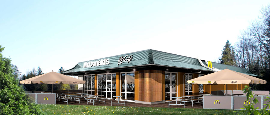 Erstellen von Dossiers, Planungen und Genehmigung bis hin zur Fertigstellung von Flagship Stores sowie Franchise Filialen. Neubau, Umbau und Erweiterungen von McDonald's Restaurantfilialen, einschließlich McCafés, Koordination, fachtechnisches Projekt, Statik und Raumdesign. Unter anderem für die Deutsche Bahn (DB) sowie für die URBANIS innerhalb der Berliner Verkehrsbetriebe (BVG).
