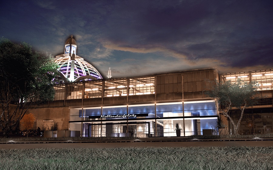 Die Gewerbefläche sollte sich ebenso in den denkmalgeschützten Bahnhof integrieren als auch das Pendant zur beleuchteten Kuppel in Regenbogenfarben darstellen. Auch galt es die vor Ort vorhandenen Gedenkstelen und Mahnmale für mehr Toleranz thematisch zu ergänzen.