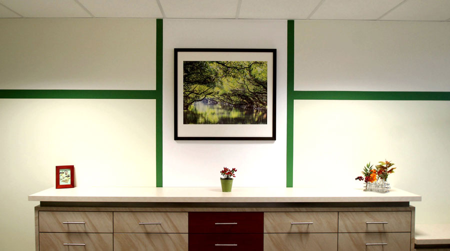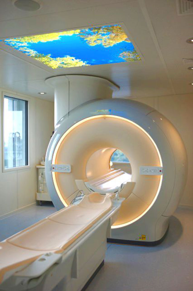 Raumgestaltung, Innenraum- und Möblierungskonzept für eine Arztpraxis mit 2 Magnetresonanztomographen (MRT).