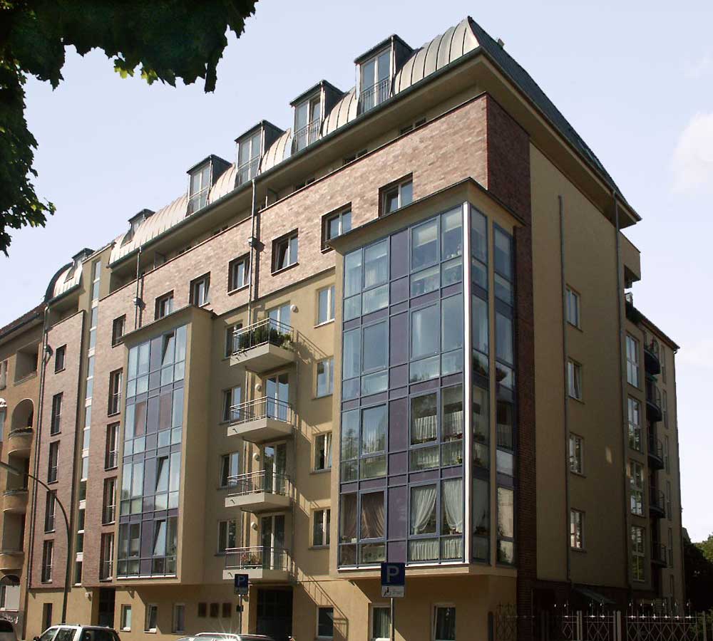 Bei dem Neubau handelt es sich um ein siebengeschossiges Wohnhaus zzgl. ausgebautem Dachgeschoss sowie weiteren Gewerbe- und Büroeinheiten. Alle 48 Wohnungen verfügen über Balkon, Terrasse und / oder Wintergarten. Die Nettowohnfläche beträgt ca. 3.400 m². Die Wohnungen sind nach DIN 18025 barrierefrei ausgeführt.