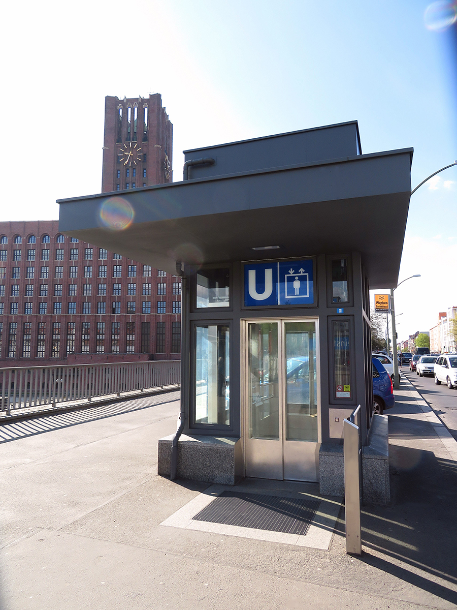 Barrierefreier Ausbau: Im Zuge des Neubaus eines Handels-, Freizeit- und Kulturzentrums an dem Hafengelände Tempelhof, sollte die barrierefreie Erschließung des U-Bahnhofes mit hergestellt werden. Der Neubau des Aufzuges wurde somit Bestandteil des Vorhaben- und Erschließungsplanes zwischen Vorhabenträger, der Tempelhofer Hafen GmbH, der BVG und dem Bezirk.